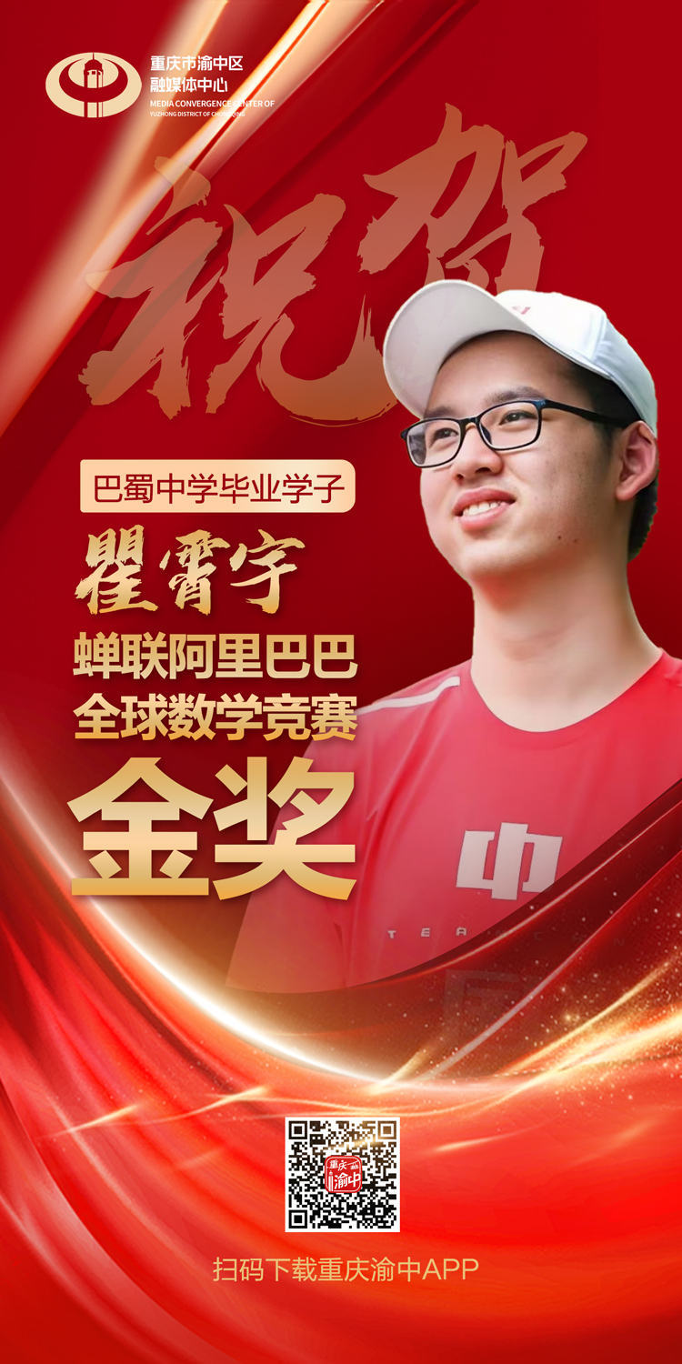 海报|巴蜀中学毕业学子瞿霄宇 蝉联阿里巴巴全球数学竞赛金奖