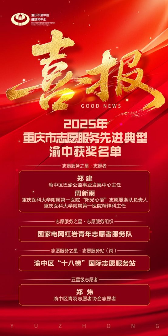 海报|渝中这些个人和组织,获评2025年重庆市志愿服务先进典型!