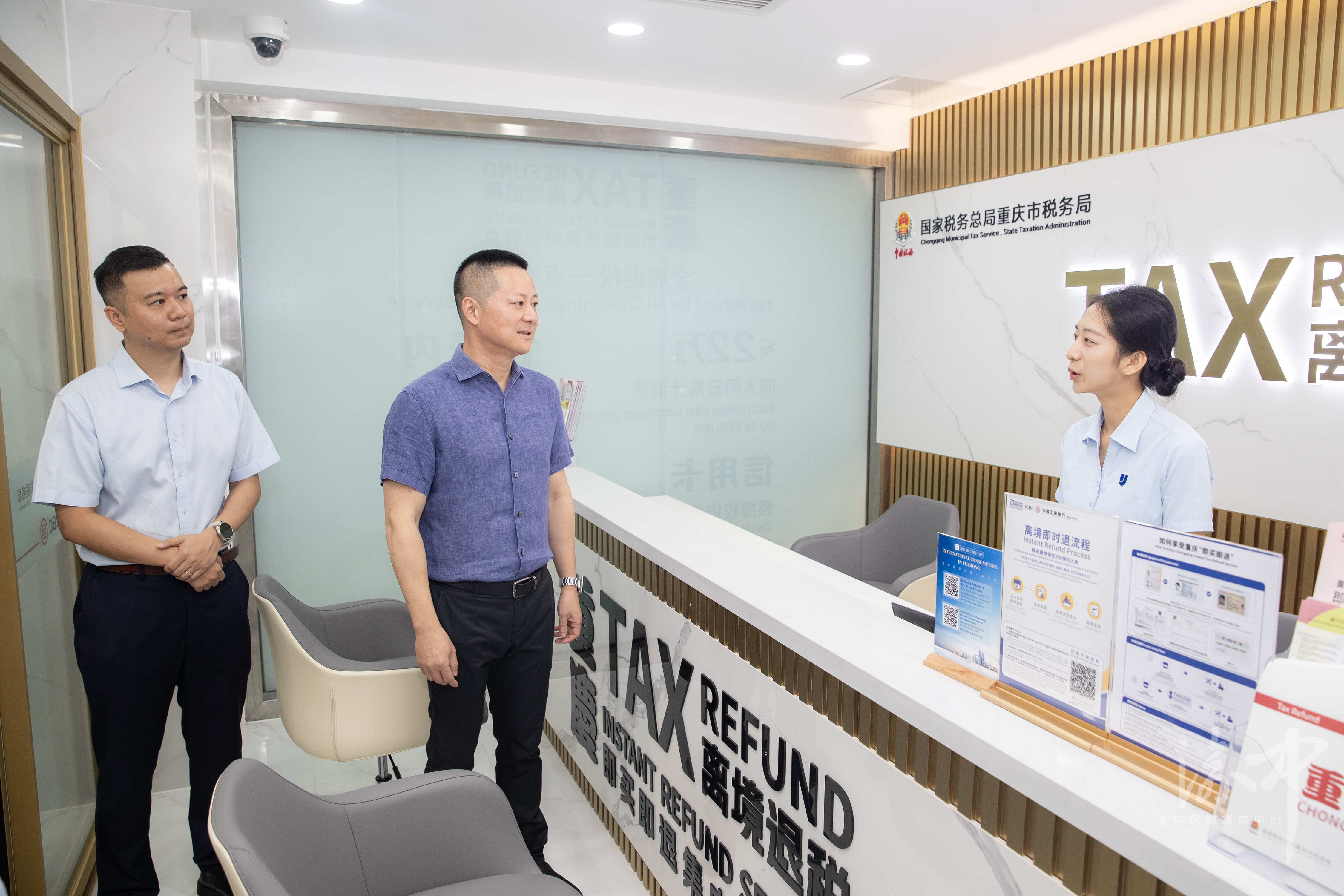 渝中区委副书记、区长谢东调研解放碑离境退税“即买即退”集中退付点有关工作。