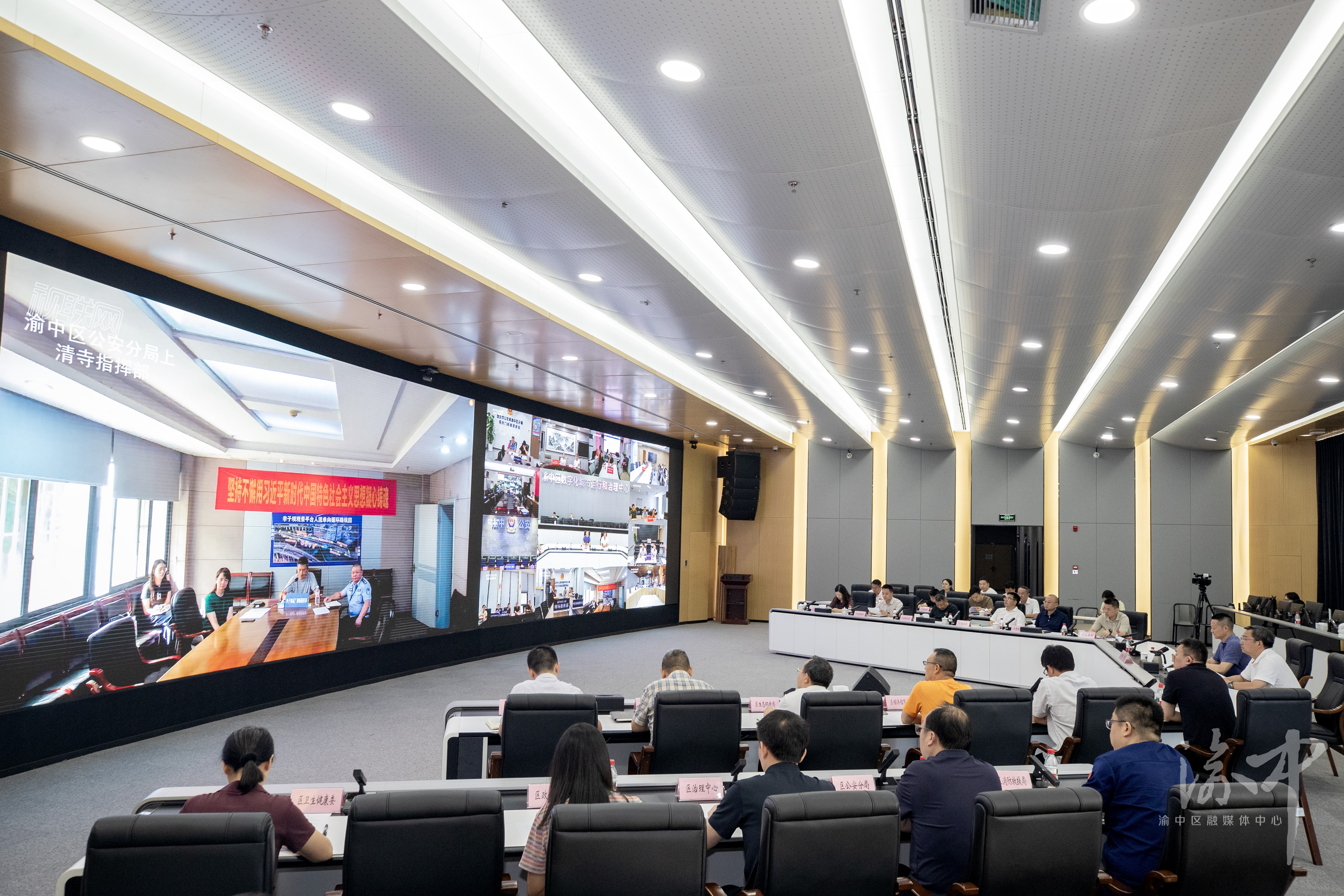 渝中区数字化城市运行和治理中心指挥大厅,渝中区委副书记、区长谢东召开视频调度会。